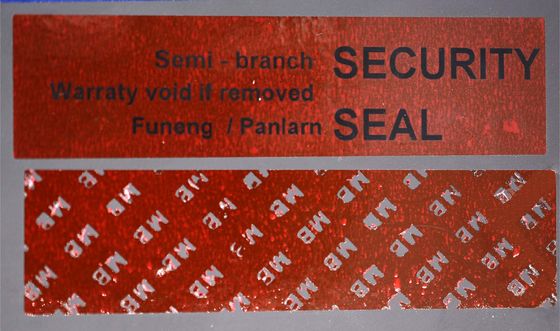 변조 방지 인쇄 정보는 특수 공정으로 자기 접착 물질의 뒷면에 형성됩니다 (보통 정보에는 "VOID", "VOIDOPEN","OPENED" 또는 고객에 의해 설계된 다른 미리 설정된 텍스트)"OPENED VOID"라는 숨겨진 단어를 열기 전까지는 볼 수 없습니다. 열었을 때, 트레이는 "Opened invalid"라는 단어를 표시하고 응용 프로그램 객체와 라벨을 다시 봉인할 수 없습니다.