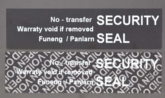 밀폐 된 메시지의 유형은 특수 프로세스를 통해 스티커 재료의 뒷면에 생성되었습니다 (일반적으로 메시지는 "VOID", "VOIDOPEN","OPENED" 또는 우리의 고객에 의해 설계 된 다른 미리 결정 된 단어).열기 전에 숨겨진 "OPEN EMPTY"라는 단어를 볼 수 없습니다.열었을 때, 상단 병에는 " OPEN EMPTY "와 사용 된 항목이 표시되며 라벨은 다시 닫을 수 없습니다.표지판에 있는 위조 방지 층의 일부만 중고품으로 옮겨집니다.