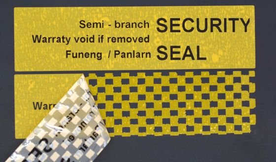 일종의 조작-투명 인쇄 메시지는 특수 프로세스를 통해 자착 스티커 재료의 뒷면에 형성되었습니다 (일반적으로 메시지는 "VOID", "VOIDOPEN","OPENED" 또는 우리의 고객에 의해 설계 된 다른 미리 설정 된 단어)."OPENED VOID"라는 숨겨진 단어를 열기 전에 볼 수 없습니다.일단 열리면 표면 층은 "OPENED VOID"라는 단어와 적용 된 대상을 보여줍니다. 그리고 라벨은 다시 봉인 할 수 없습니다.표지판의 위조층의 일부만 적용된 물건에 전달됩니다.
